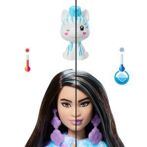 Unbox a world of surprises with this Barbie Cutie Reveal Zebra doll from the Color Dream Series! This adorable doll offers 10 exciting surprises in one package. You'll discover a posable Barbie doll hidden inside a soft zebra plush costume.
