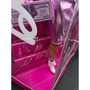 The Barbie Deluxe Style Doll exudes elegance in a striking metallic pink dress. Crafted for collectors and children alike, it comes adorned with chic accessories, including a stylish purse and white gloves, all encased in its original packaging. Suitable for ages 4 and up, this doll offers a touch of fashionable sophistication.