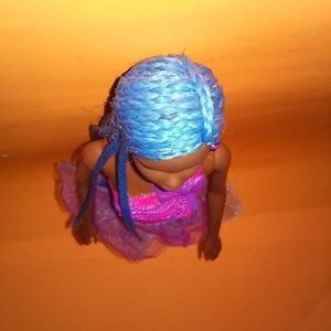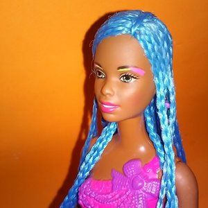 This One of a Kind Ballet Christie Barbie Doll has Colorful Blue Braids Hairstyle created by hand