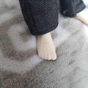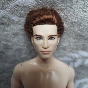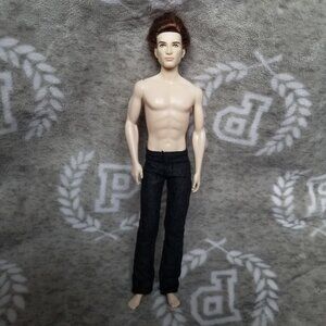 Twilight Edward Cullen Pink Label Collector Barbie doll. His skin is glittery. He is mostly nude, but I believe he is wearing his original pants. Only flaws I see are a small blue mark on his back, some indents in his feet, and a chip in the paint on his right eyebrow. EUC.