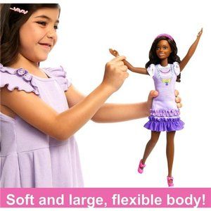 This Barbie “Brooklyn” Roberts 13.5-inch doll is inspired by her character in the My First Barbie YouTube series. A soft torso and limbs make her easy to handle, carry around and dress.
