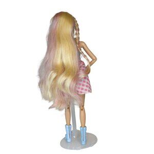 Barbie Extra Fly Snow Redressed Articulated Doll Long Blonde Pink Hair Millie 2023. Condition is preowned. This barbie decided to skip the snow and go for a spring theme in her pink checkered dress and still styling her original snow boots. Stand is not included. (FC06)