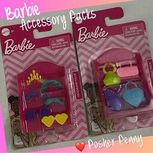 Stylish Barbie accessory packs. Includes vibrant fashion items to enhance your Barbie's wardrobe.