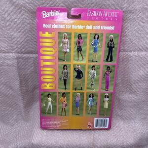 Barbie Fashion Avenue Boutique Outfit #18126 featuring a pink velvet dress paired with a colorful sheer top—classic late-90s Fashion Avenue styling. Perfect for display dolls, collectors, and completing vintage Barbie wardrobes. Authentic Mattel outfit in excellent condition. Packaging does have some damage.