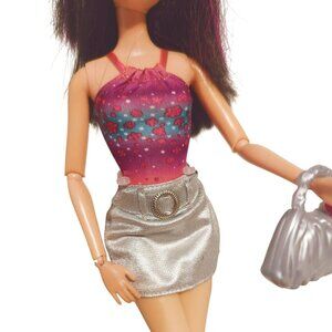 Barbie Fashion Fever Raquelle Rock Out Fashion Doll Articulated 2008 C360G Restyled. Condition is preowned. This doll is rocking it in a purple tube top, silver metallic skirt and a matching purse. Approximate height: 11.5 inches. Stand is not included. (FC07)