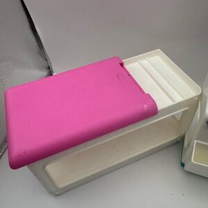 Two piece of furniture from Mattel Barbie Fast Cast Clinic Playset With Brunette Barbie Doctor Doll. The second piece, the patient table is missing a piece that allows the doll to sit up.