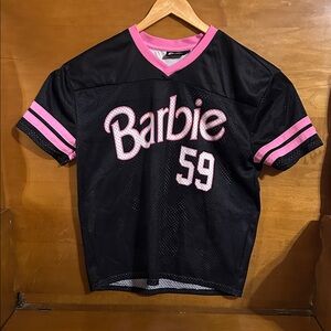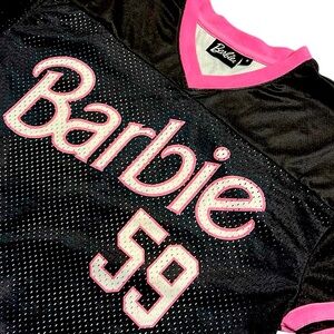 Barbie football jersey 59 women size small S black pink oversized streetwear sporty casual game day graphic top retro Y2K Barbiecore collector’s Barbie shirt jersey cropped athletic trendy girly sports