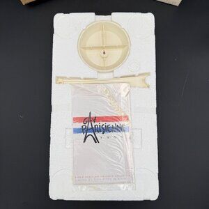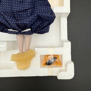 This exquisite Gay Parisienne Porcelain Barbie is a stunning piece from Mattel's limited edition collection. Dressed in a polka dot dress with a fur stole, she exudes elegance. Perfect for collectors, this Barbie comes with its original box and packaging, showcasing its pristine condition.