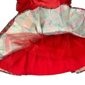 Barbie Girls Red Plaid Holiday Party Dress Tulle Bow Cap Sleeves