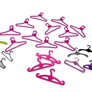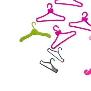 Barbie Clothing Hangers Lot of 20 Top Hangers. Pink Purple, Green White