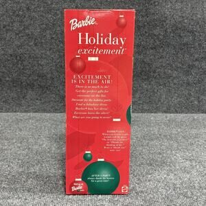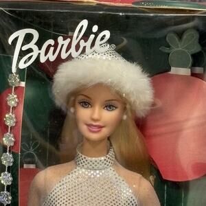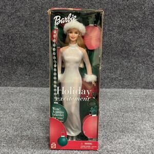 Barbie Holiday Excitement Doll 2003 Mattel Blonde in White Gown Christmas Themed