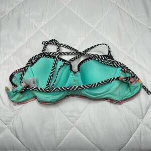 Barbie Inspired Bikini Bralette Top 34B Underwired Lined Striped Crossback Pink