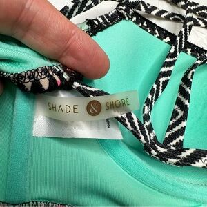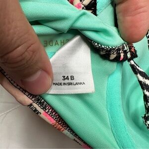 It's machine washable, easy to care for, and comes in a size 34B. This top is perfect for anyone who loves the beach and sea theme. Get ready to turn heads with this Shade & Shore brand top.