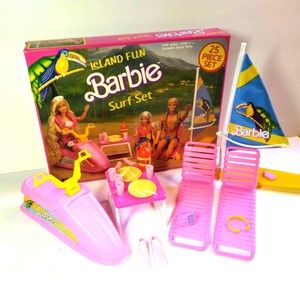 Barbie Jet Ski Playset ARCO ISLAND FUN SURF SET 1987 #7948 flippers Sailboard