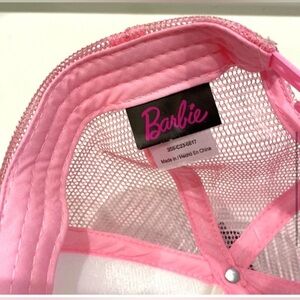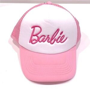 Stay fashion forward with the help of this Barbie Mesh Trucker Hat. This mesh cap features a pink brim and a white front. The name "Barbie" is embroidered in pink script for an iconic look. Keep this hat close by to complete your adorable outfit!