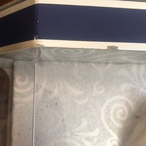 Please see pics and video. There are some scuffs and see cardboard edges. Has original price tags from Lord & Taylor and has anti theft sticker on the bottom. Comes from a smoke free home.