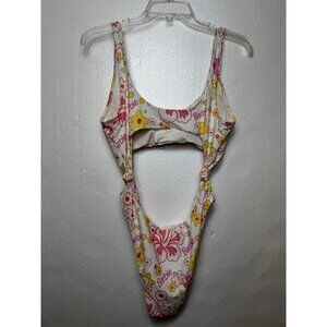 Barbie Monokini SIZE L One-Piece Swimsuit White Multicolored Flowers Beach Cute
