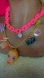 “Holy Chic!!!, that necklace is a head turner”, handmade and one of kind like the Doll inside every woman. This beautiful necklace features multiple accent charms that definitely classify it as a statement piece, from an authentic Barbie head down center, to a clay boombox. The chain is multi colored with acrylic neon pink, gold and pink rhinestones.