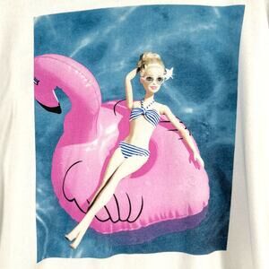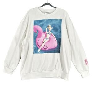 Barbie Off White Flamingo Pool Graphic Crew Neck Sweatshirt Womens XL