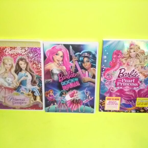 Barbie Pearl Princess & the Pauper & Rock n royals DVD Bundle