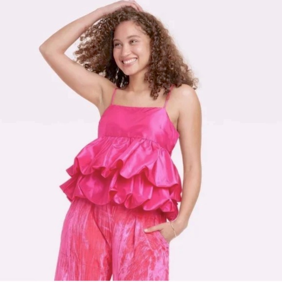 Women's Tiered Taffeta Tank Top - A New Day Pink Size Medium