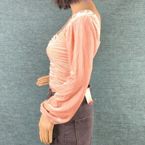 Barbie Pink Velvet Long Sleeve Ruched Crop Top, Square Neckline Juniors