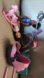 two free used Barbies shown. stroller, playpen, rocking horse,car seat and play set (missing the hang toys)playset with dolls, stroller, and rocking horse.