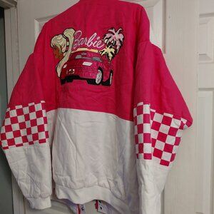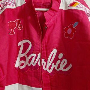 Barbie Pink and White Sz 2XL, Lined Denim Heavy Jacket, NWOT. I bought this from Boxed Lunch intending to wear it but I lost a lot of weight and it is too big for me now. Great Jacket. More like a coat.