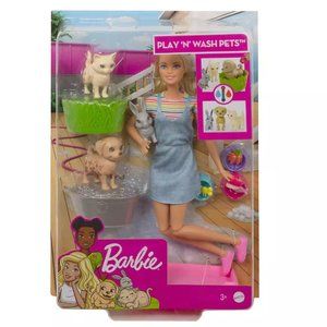 Barbie | Play 'N Wash Pets | Doll & Playset w/ 3 Color-Change Animals & 10 Accs