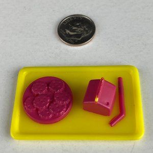 Barbie Pretend Food Tray Milk Straw Cookies Yellow Tray Plate Playset Accessory