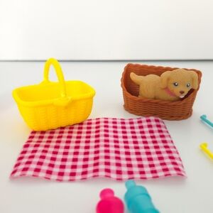Barbie Puppy Picnic Camping Fun Doll Accessories Set- Bobble Head Dog, Fishing