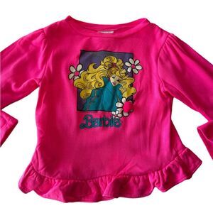 Barbie Rare Vintage 1990 Made in USA Kids Shirt Pink Ruffles 3D Flower Girl 6X