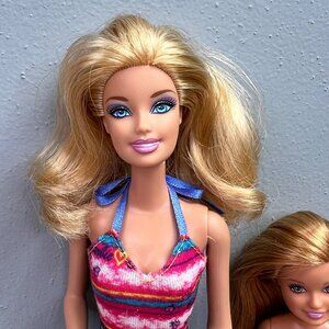 Barbie Sisters Go Fishing set from 2011. Good condition except for break in Barbie's neck on both sides. Stacie is not the original - she is missing her freckles.