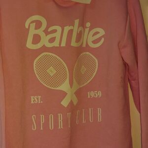 Step up your style game with this adorable Barbie SportClub pink sweatshirt! This pre-owned gem is in good condition and ready to add a pop of color to your wardrobe.