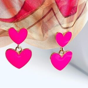 Barbie Style Heart Shaped Earring Hot Bright Pink - NWOT