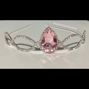 The crown is made of durable iron and plated in silver, featuring a large pink austrian glass stone. Will fit all size heads. One of a kind piece. Great for Barbie cosplay or Halloween!