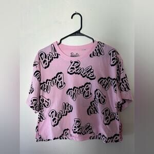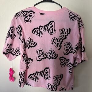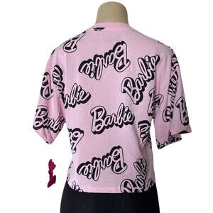 Camiseta corta rosa Barbie con logotipo repetido talla M NWT 2024