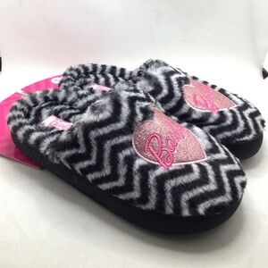 Barbie Womens Zebra Print Glitter Heart Plush Faux Fur Slippers Size Small 5-6