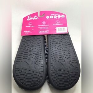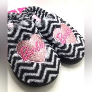 Barbie Womens Zebra Print Glitter Heart Plush Faux Fur Slippers Size Small 5-6. New on retail brand hanger. From smoke free home.