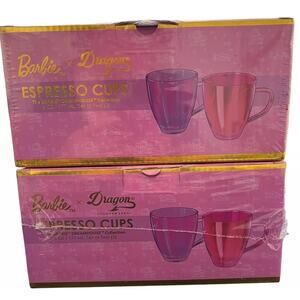 Barbie X Dragon Glass Coffee Mugs, Pink & Magenta Double Wall Lot of 4 NEW