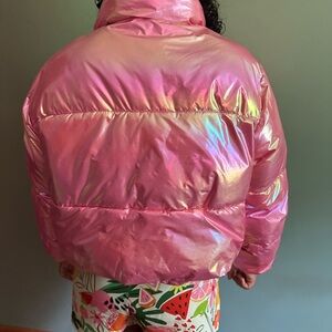 Pink cropped puffer coat