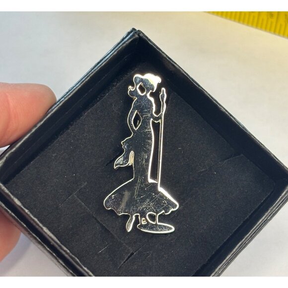A sleek silver-tone pin featuring a silhouette of an elegant woman with a flowing gown and staff. Perfect accessory to enhance formal wear.