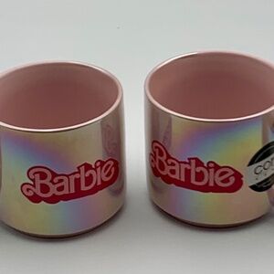 Barbie stoneware mug set. Both mugs are 15oz each. These are ina pearl pink color and both new with brand stickers.