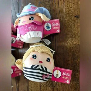 Details: Barbie x Cuutopia brings together rounded plush figures that allows fans of the iconic fashion doll to get up close and huggable for snuggles or storytelling. Each measuring approx 5” in length, these are sure to please at home or on the go!! Features Ken, Cowgirl Barbie, Vintage/Retro Barbie and Iconic Pink Barbie.