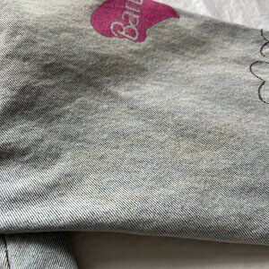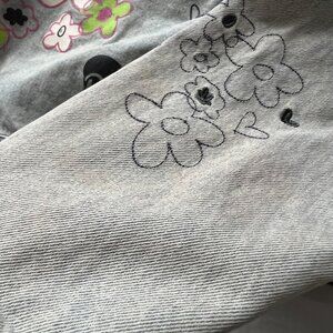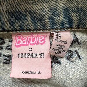 Barbie x Forever 21 denim jacket Medium distressed cropped floral painted