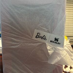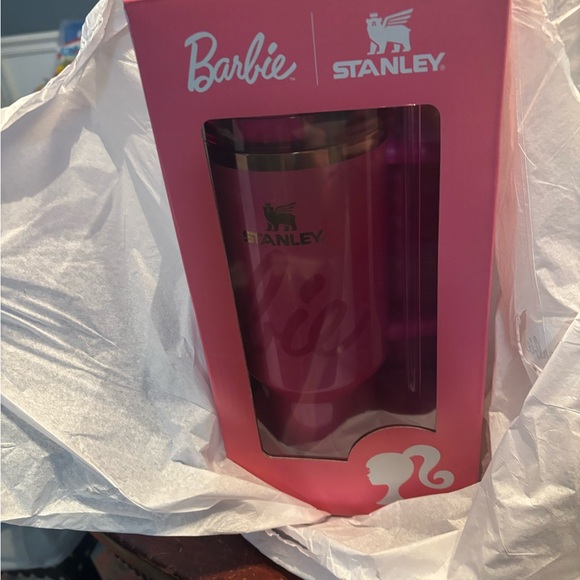 Brand New in Box Stanley BARBIE 65th Anniversary Collaboration Limited Edition 2024 Steel 40 oz. Quencher Tumbler. This tumbler represents the classic iconic Barbie pink. It has the classic Barbie signature on the iridescent pink with gold shimmer. It is individually packaged in a box matching the tumbler. It has a matching pink lid, handle and reusable pink straw. Comes from a Smoke Free and Pet Free home.