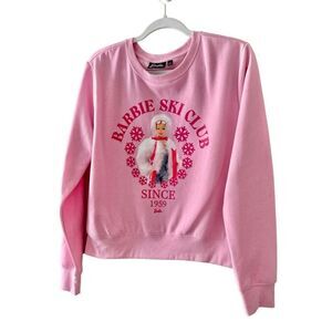 Barbie Sweatshirt Ski Club 1959 Size Large Pink Crewneck Graphic Cropped NEW