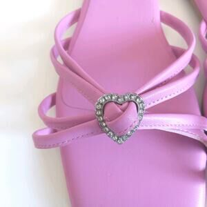 Barbiecore Pink Sandals with Rhinestone Hearts. Size 8.5 Legally Blond, Y2K
