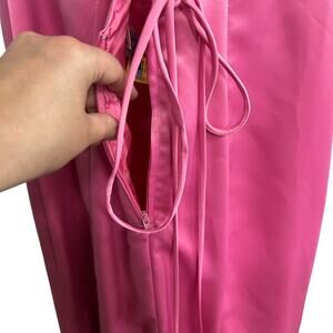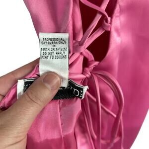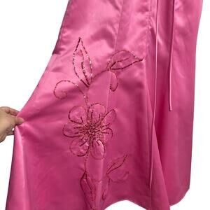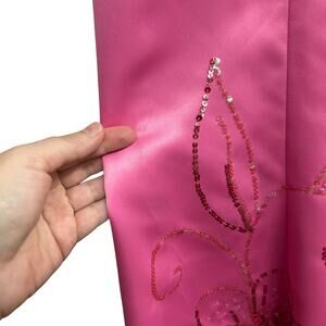 Barbiecore > satin sequin floral lace-up gown > Y2K glam > size 11/12