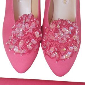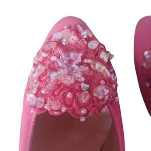 Be a living Fashion Doll in these pink heels and dyed to match clutch. Embellished with beads and sequins accents.